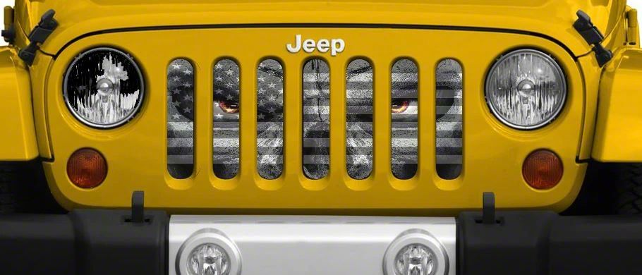 Personalize Your Jeep. This Grille Insert; Black and White Angry Patriot will customize your Jeep in your own way. Rest assured, it will not compromise the integrity of your grille. Your radiator and engine compartment still gets the proper airflow needed to perform.
