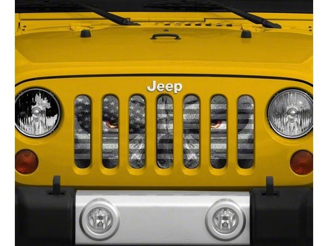 Personalize Your Jeep. This Grille Insert; Black and White Angry Patriot will customize your Jeep in your own way. Rest assured, it will not compromise the integrity of your grille. Your radiator and engine compartment still gets the proper airflow needed to perform.