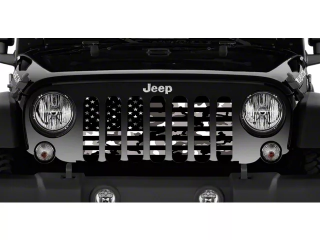 Grille Insert; Black and White Camo Flag (07-18 Jeep Wrangler JK)Find parts that fit my vehicle