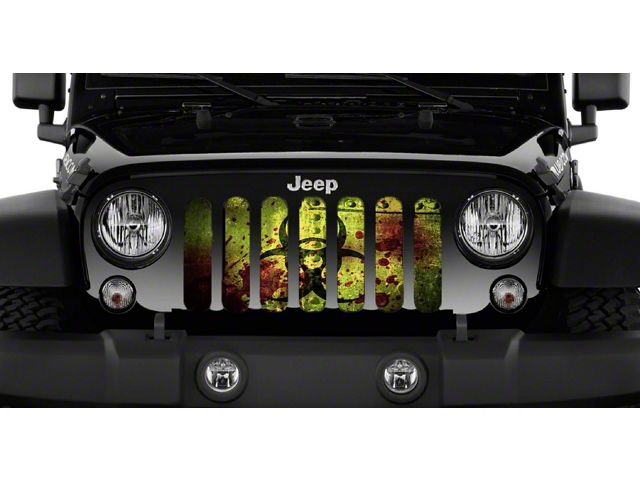 Personalize Your Jeep. This Grille Insert; Bloody Biohazard will customize your Jeep in your own way. Rest assured, it will not compromise the integrity of your grille. Your radiator and engine compartment still gets the proper airflow needed to perform.