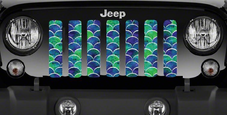 Personalize Your Jeep. This Grille Insert; Blue and Green Mermaid Scales will customize your Jeep in your own way. Rest assured, it will not compromise the integrity of your grille. Your radiator and engine compartment still gets the proper airflow needed to perform.