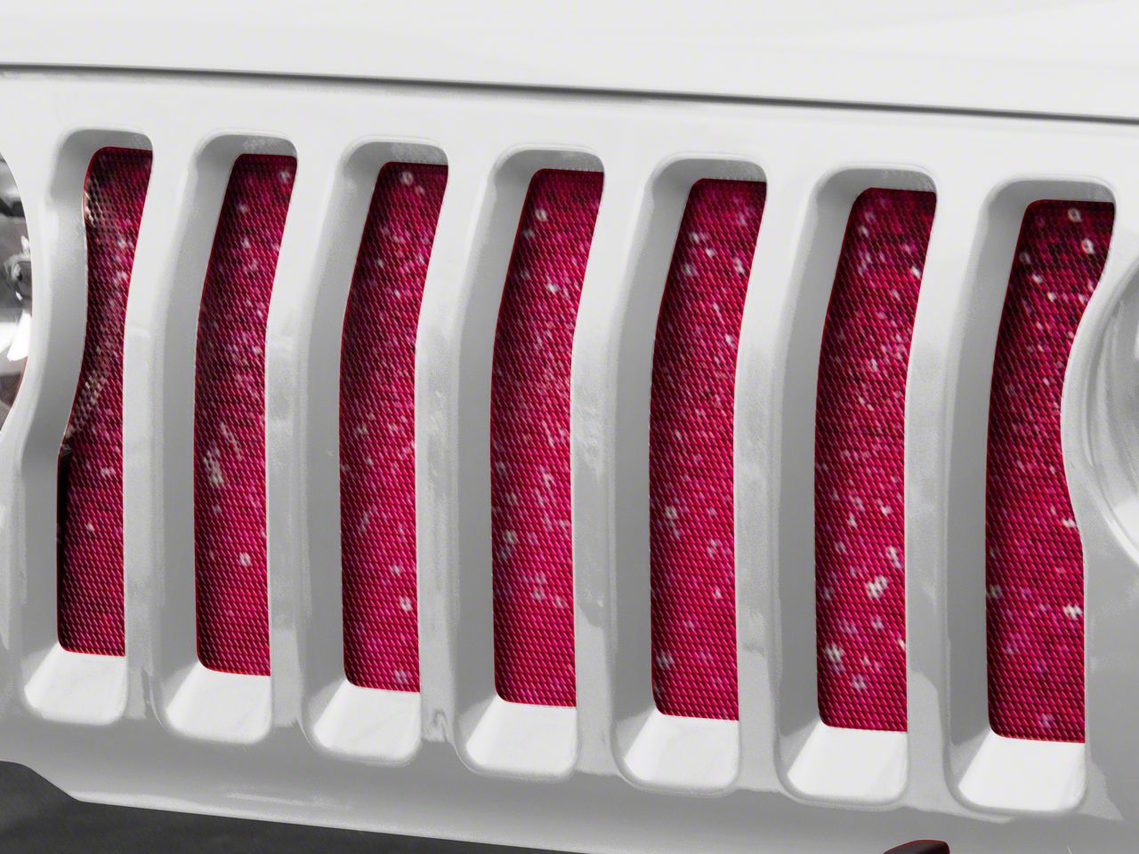 Personalize Your Jeep. This Grille Insert; Bright Pink Fleck will customize your Jeep in your own way. Rest assured, it will not compromise the integrity of your grille. Your radiator and engine compartment still gets the proper airflow needed to perform.