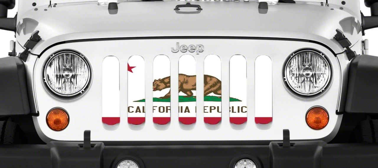 Personalize Your Jeep. This Grille Insert; California Republic will customize your Jeep in your own way. Rest assured, it will not compromise the integrity of your grille. Your radiator and engine compartment still gets the proper airflow needed to perform.