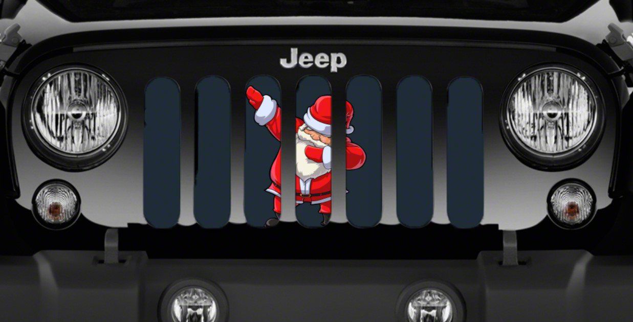 Personalize Your Jeep. This Grille Insert; Dabbing Santa will customize your Jeep in your own way. Rest assured, it will not compromise the integrity of your grille. Your radiator and engine compartment still gets the proper airflow needed to perform.