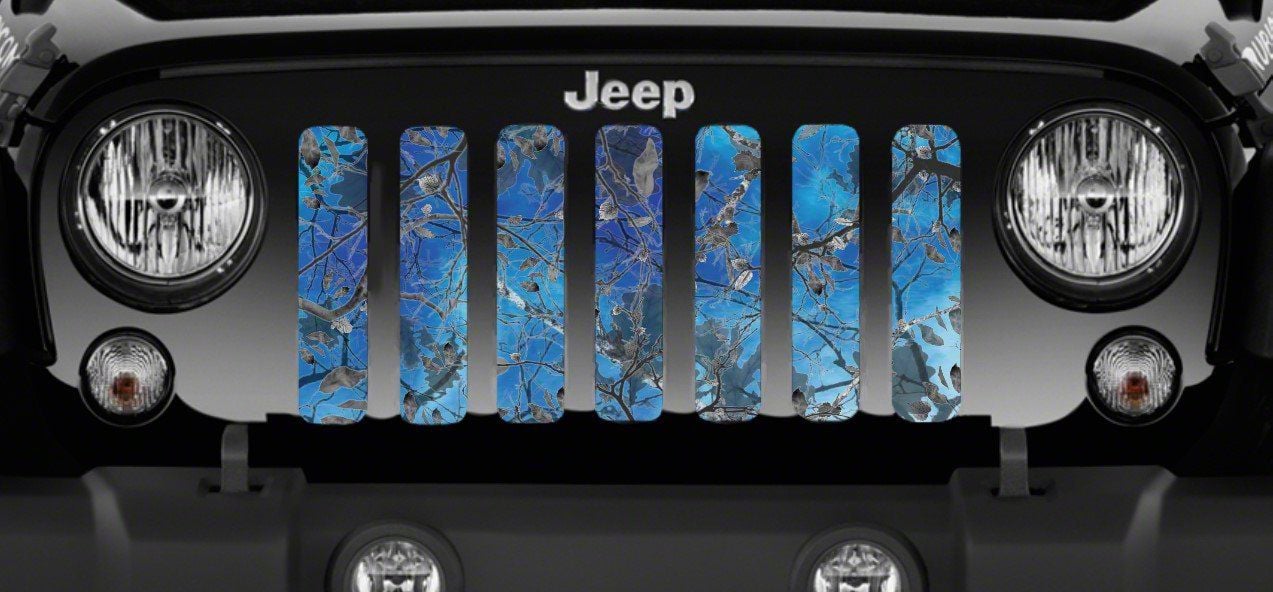 Personalize Your Jeep. This Grille Insert; Dirty Girl Blue Undertow Woodland Camo will customize your Jeep in your own way. Rest assured, it will not compromise the integrity of your grille. Your radiator and engine compartment still gets the proper airflow needed to perform.