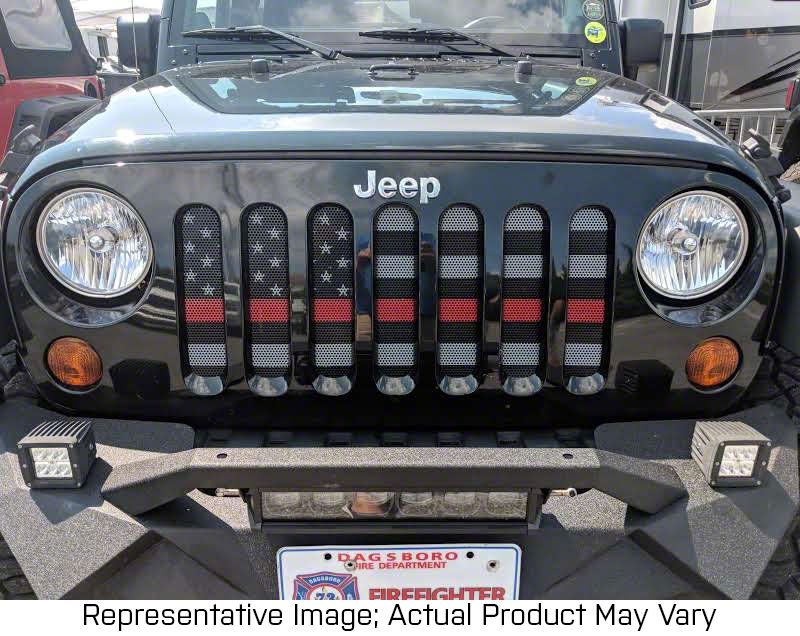 Style and Quality. If you're looking to add a unique touch to your vehicle's appearance, then the Grille Insert with Fireman Red Line on a Black and White Flag is a great choice. This grille insert features a striking design that is sure to catch people's attention. The red line on a black and white flag gives it a patriotic and distinctive look. The grille insert is made with high-grade stainless steel, which means it is built to last and can withstand harsh weather conditions. Additionally, it is resistant to harmful elements such as rust and corrosion, which helps to ensure that it remains looking great for years to come.