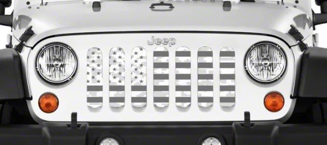 Personalize Your Jeep. This Grille Insert; Ghost American Flag will customize your Jeep in your own way. Rest assured, it will not compromise the integrity of your grille. Your radiator and engine compartment still gets the proper airflow needed to perform.