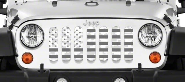 Personalize Your Jeep. This Grille Insert; Ghost American Camo Flag will customize your Jeep in your own way. Rest assured, it will not compromise the integrity of your grille. Your radiator and engine compartment still gets the proper airflow needed to perform.