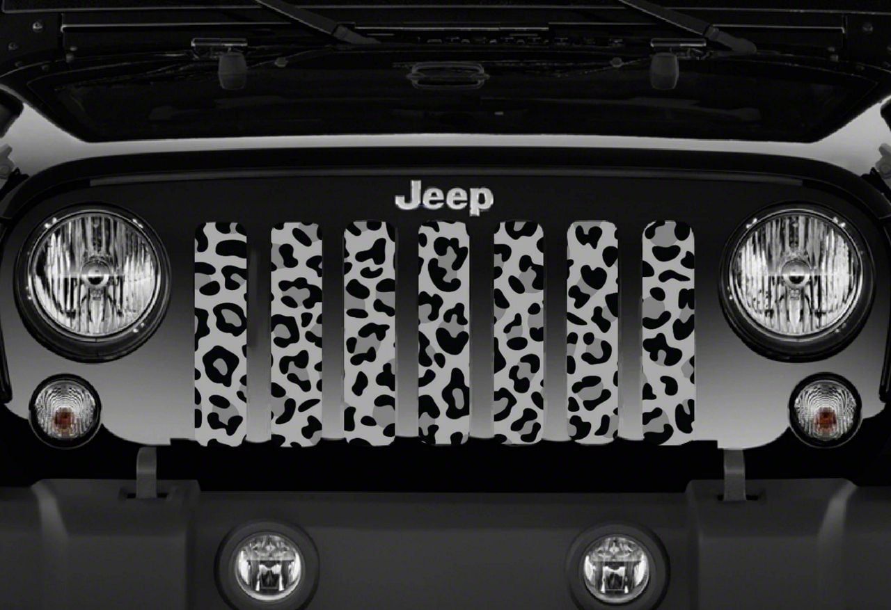 Personalize Your Jeep. This Grille Insert; Gray Leopard Print will customize your Jeep in your own way. Rest assured, it will not compromise the integrity of your grille. Your radiator and engine compartment still gets the proper airflow needed to perform.