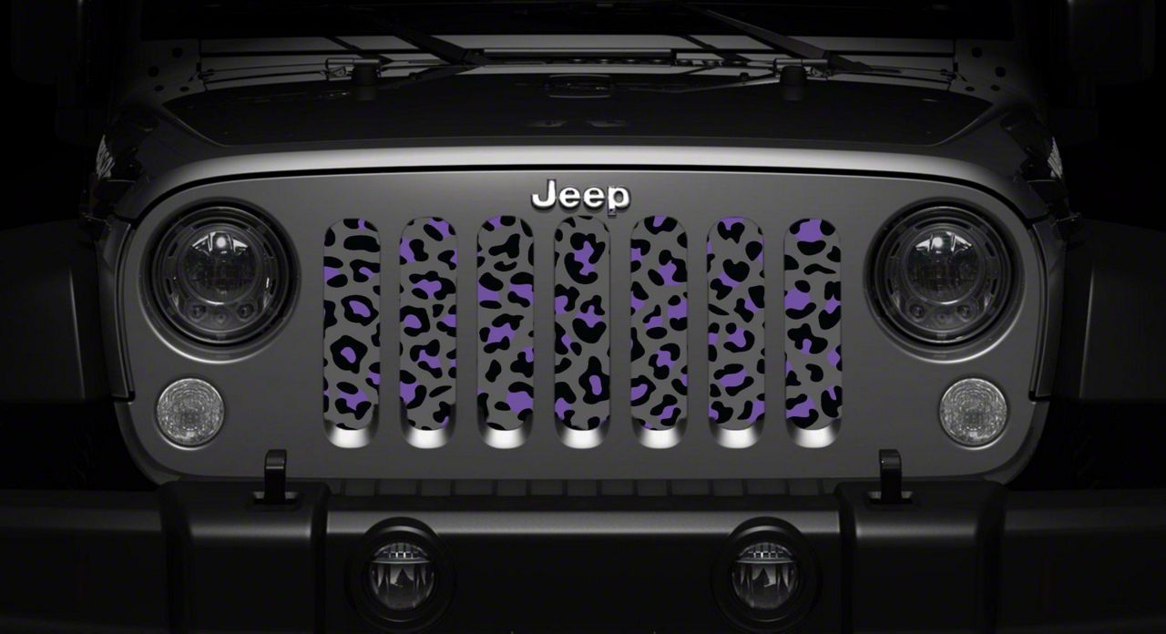 Personalize Your Jeep. This Grille Insert; Gray and Purple Leopard Print will customize your Jeep in your own way. Rest assured, it will not compromise the integrity of your grille. Your radiator and engine compartment still gets the proper airflow needed to perform.