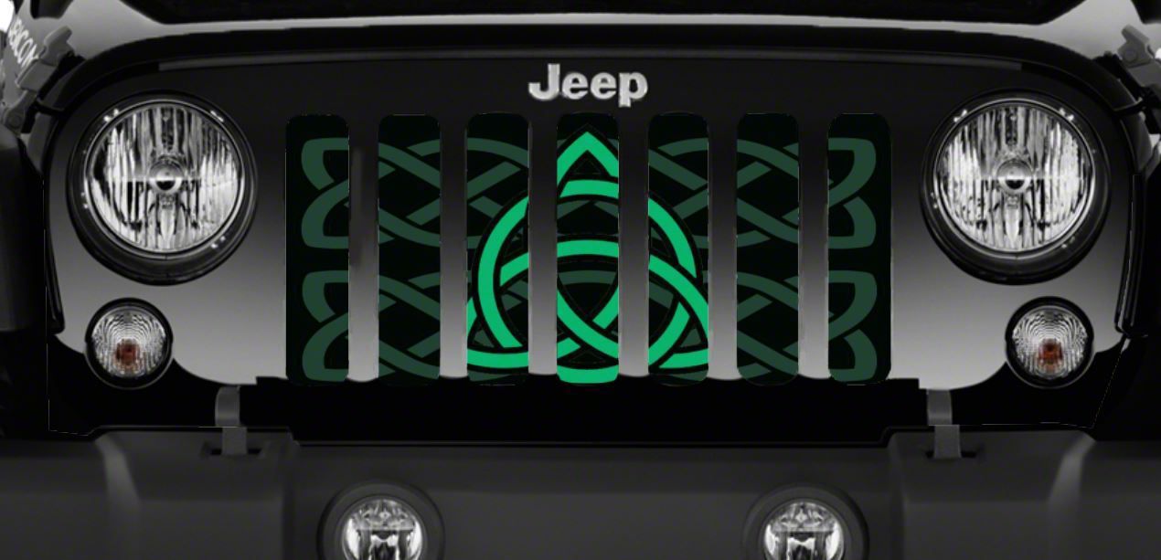 Personalize Your Jeep. This Grille Insert; Green Celtic Knot will customize your Jeep in your own way. Rest assured, it will not compromise the integrity of your grille. Your radiator and engine compartment still gets the proper airflow needed to perform.