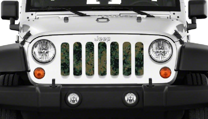 Personalize Your Jeep. This Grille Insert; Green Digi Camo will customize your Jeep in your own way. Rest assured, it will not compromise the integrity of your grille. Your radiator and engine compartment still gets the proper airflow needed to perform.