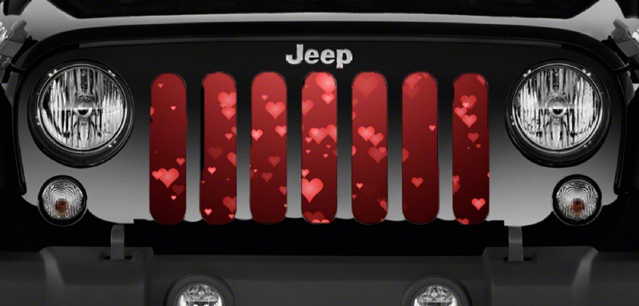 Personalize Your Jeep. This Grille Insert; Love Struck will customize your Jeep in your own way. Rest assured, it will not compromise the integrity of your grille. Your radiator and engine compartment still gets the proper airflow needed to perform.