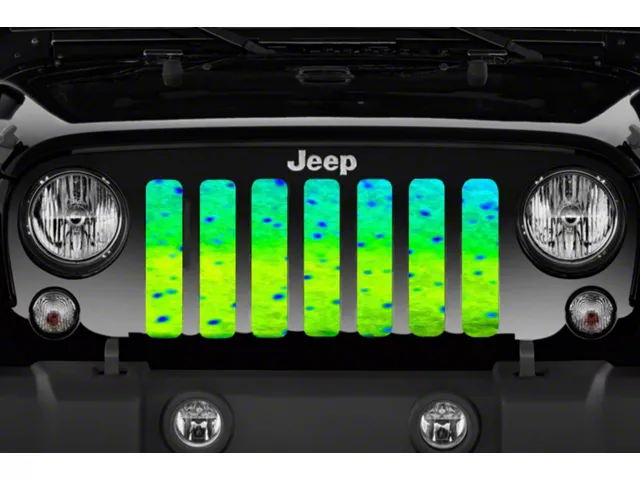 Personalize Your Jeep. This Grille Insert; Mahi Fish Skin will customize your Jeep in your own way. Rest assured, it will not compromise the integrity of your grille. Your radiator and engine compartment still gets the proper airflow needed to perform.