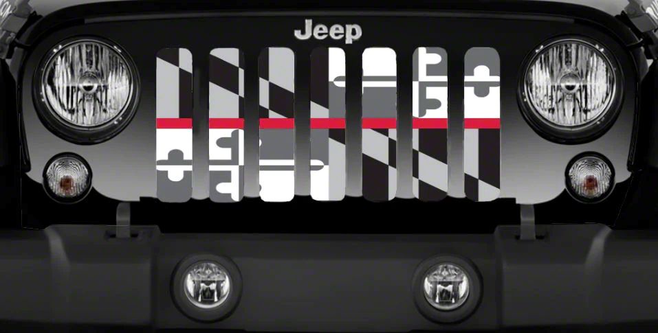 Grille Insert; Maryland Grayscale Flag with Red Line (18-23 Jeep Wrangler JL)Find parts that fit my vehicle