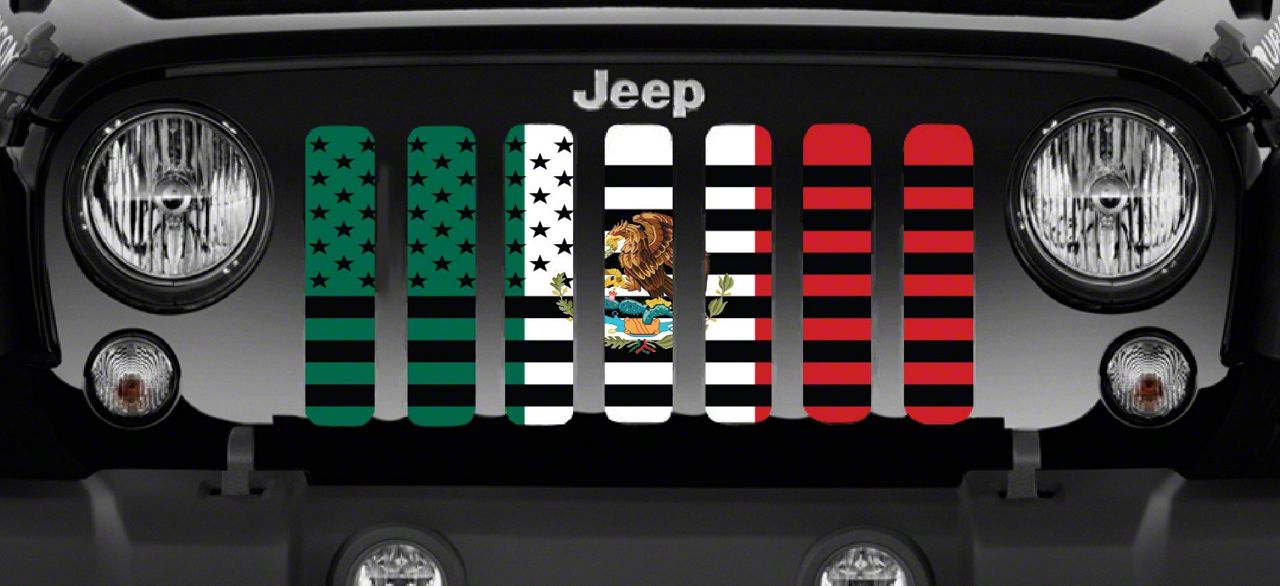Personalize Your Jeep. This Grille Insert; Mexican American Flag will customize your Jeep in your own way. Rest assured, it will not compromise the integrity of your grille. Your radiator and engine compartment still gets the proper airflow needed to perform.