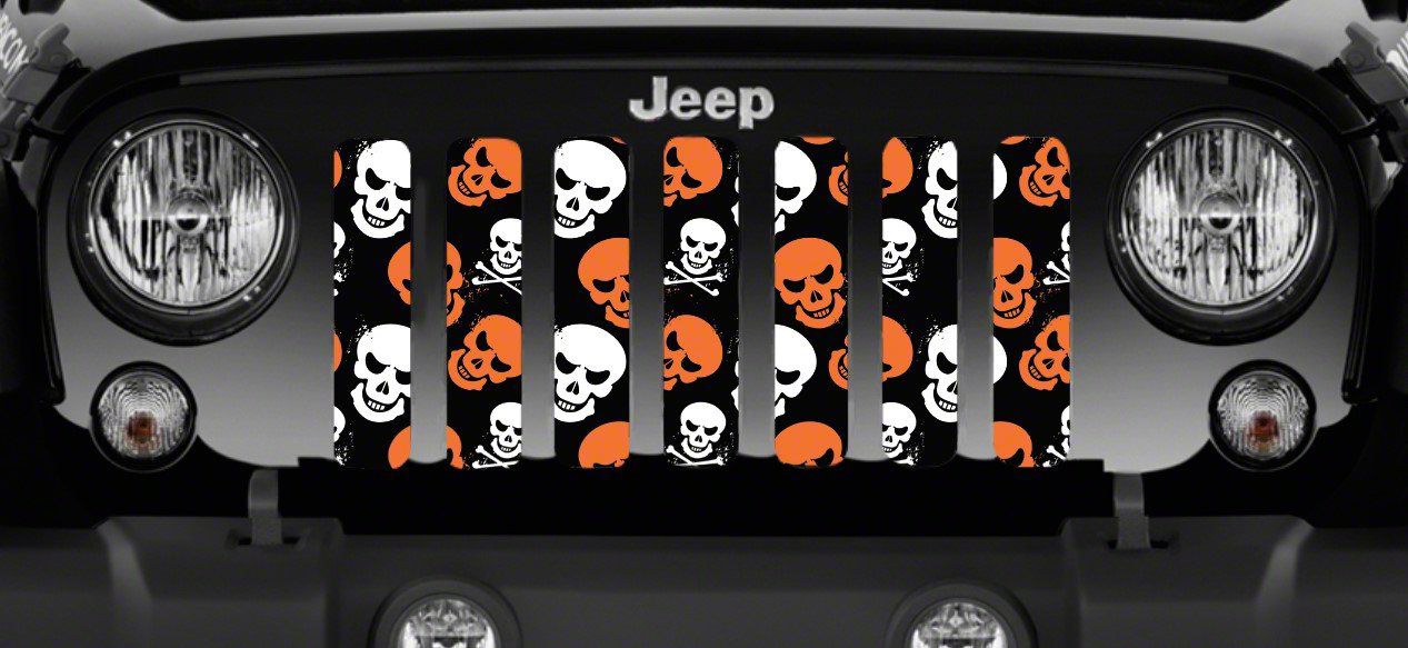 Personalize Your Jeep. This Grille Insert; Orange Skulls will customize your Jeep in your own way. Rest assured, it will not compromise the integrity of your grille. Your radiator and engine compartment still gets the proper airflow needed to perform.