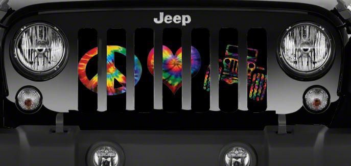 Personalize Your Jeep. This Grille Insert; Peace, Love, Jeep Tie Dye Print will customize your Jeep in your own way. Rest assured, it will not compromise the integrity of your grille. Your radiator and engine compartment still gets the proper airflow needed to perform.