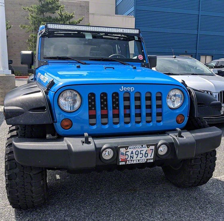 ExtremeTerrain no longer carries the Grille Insert; Police/Fireman Red/Blue on a Black and Dark Gray Flag (07-18 Jeep Wrangler JK). Please check out Jeep CJ7 Exterior Accesories & Parts for 1976-1986 Wrangler for an updated selection.