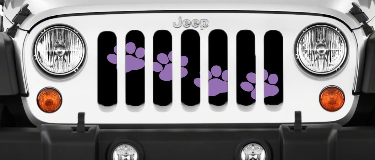 Personalize Your Jeep. This Grille Insert; Puppy Paw Prints Purple Diagonal will customize your Jeep in your own way. Rest assured, it will not compromise the integrity of your grille. Your radiator and engine compartment still gets the proper airflow needed to perform.