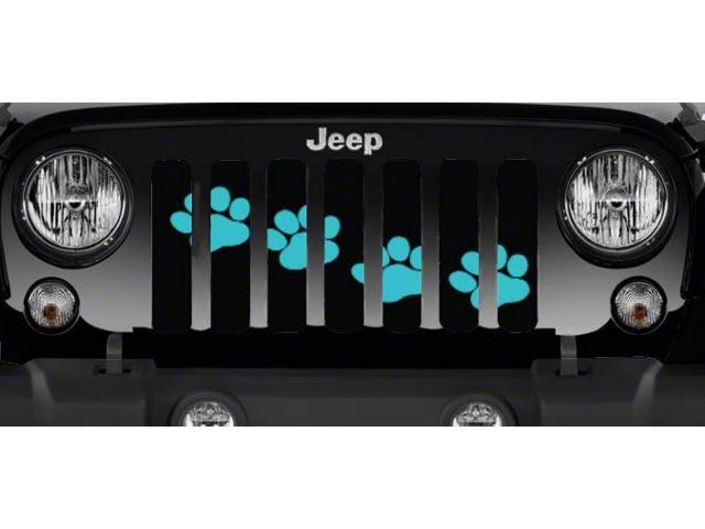 Personalize Your Jeep. This Grille Insert; Puppy Paw Prints Teal Diagonal will customize your Jeep in your own way. Rest assured, it will not compromise the integrity of your grille. Your radiator and engine compartment still gets the proper airflow needed to perform.