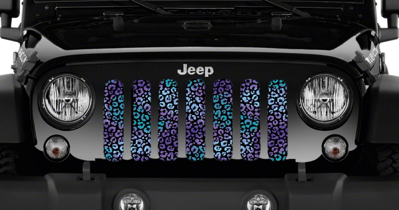 Personalize Your Jeep. This Grille Insert; Purple Leopard Print will customize your Jeep in your own way. Rest assured, it will not compromise the integrity of your grille. Your radiator and engine compartment still gets the proper airflow needed to perform.