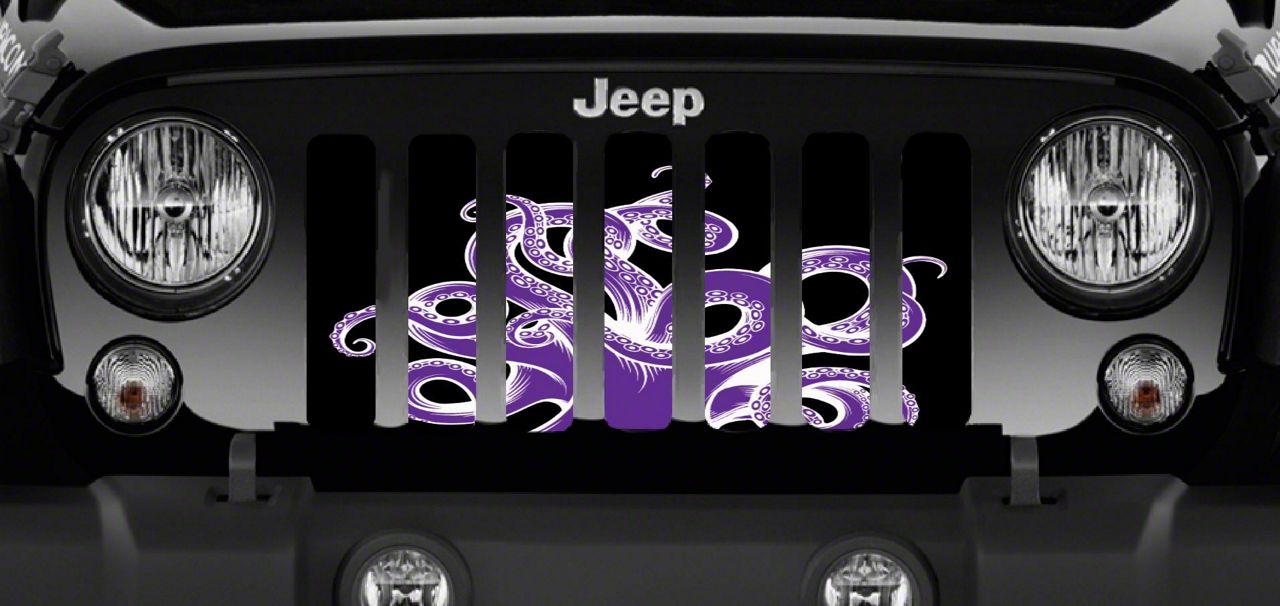 Personalize Your Jeep. This Grille Insert; Purple Octopus will customize your Jeep in your own way. Rest assured, it will not compromise the integrity of your grille. Your radiator and engine compartment still gets the proper airflow needed to perform.