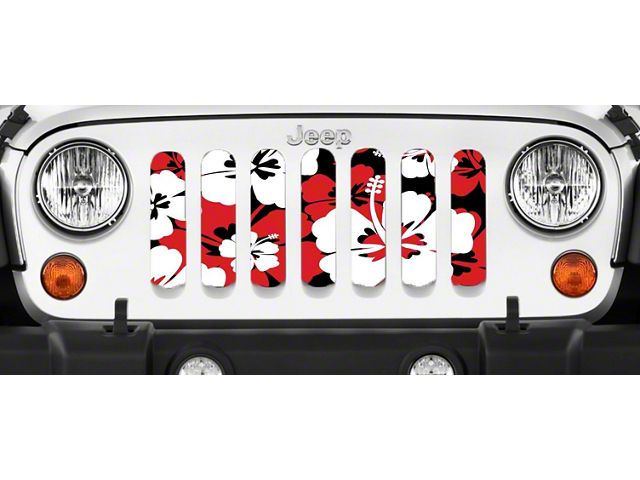 Personalize Your Jeep. This Grille Insert; Red Hawaiian Hibiscus will customize your Jeep in your own way. Rest assured, it will not compromise the integrity of your grille. Your radiator and engine compartment still gets the proper airflow needed to perform.