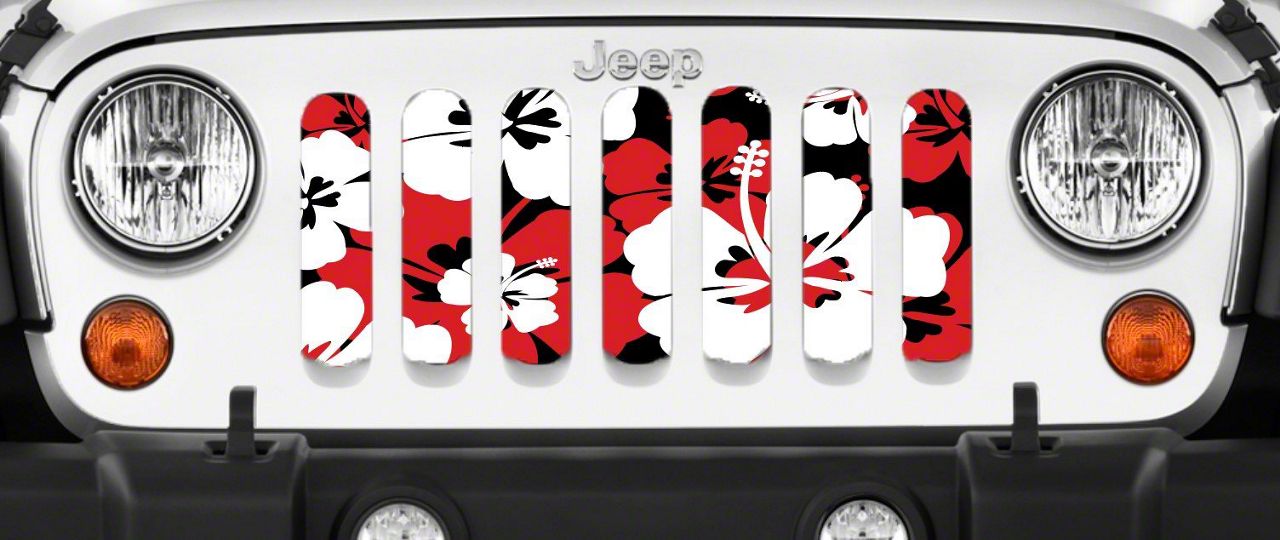 Personalize Your Jeep. This Grille Insert; Red Hawaiian Hibiscus will customize your Jeep in your own way. Rest assured, it will not compromise the integrity of your grille. Your radiator and engine compartment still gets the proper airflow needed to perform.