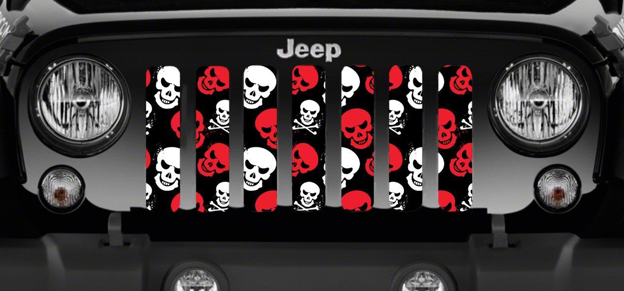 Personalize Your Jeep. This Grille Insert; Red Skulls will customize your Jeep in your own way. Rest assured, it will not compromise the integrity of your grille. Your radiator and engine compartment still gets the proper airflow needed to perform.