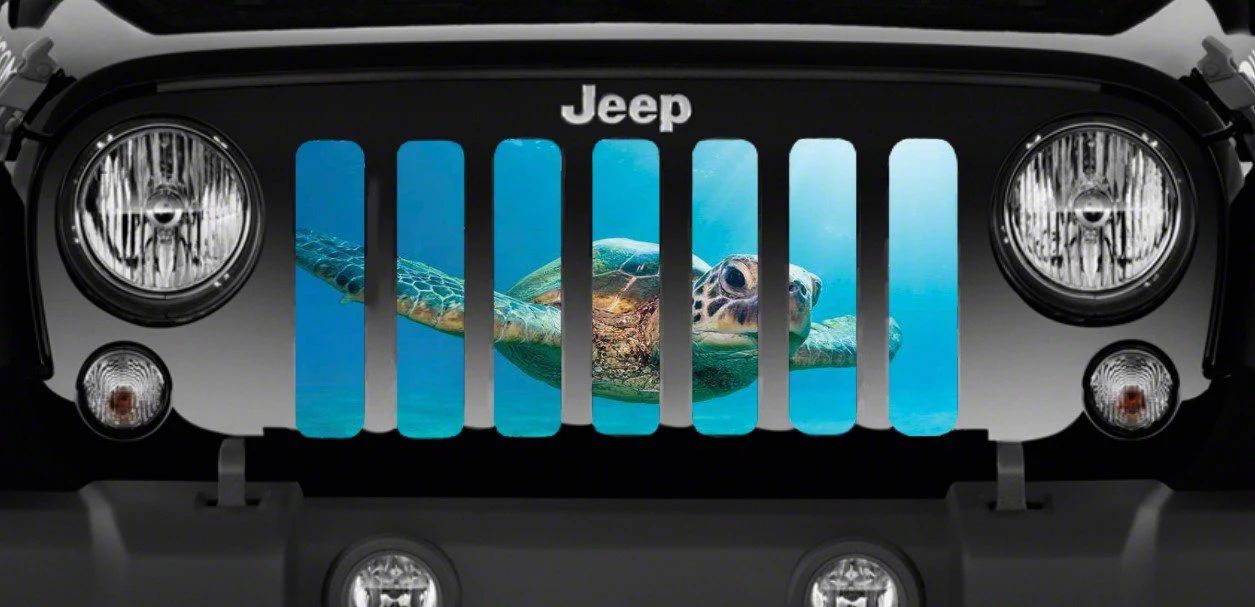 Personalize Your Jeep. This Grille Insert; Rip Tide Sea Turtle will customize your Jeep in your own way. Rest assured, it will not compromise the integrity of your grille. Your radiator and engine compartment still gets the proper airflow needed to perform.