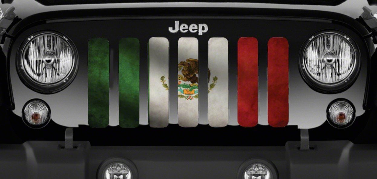 Personalize Your Jeep. This Grille Insert; Rustic Mexico Flag will customize your Jeep in your own way. Rest assured, it will not compromise the integrity of your grille. Your radiator and engine compartment still gets the proper airflow needed to perform.