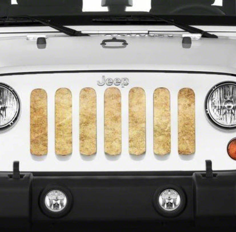 Personalize Your Jeep. This Grille Insert; Sandy Skies will customize your Jeep in your own way. Rest assured, it will not compromise the integrity of your grille. Your radiator and engine compartment still gets the proper airflow needed to perform.
