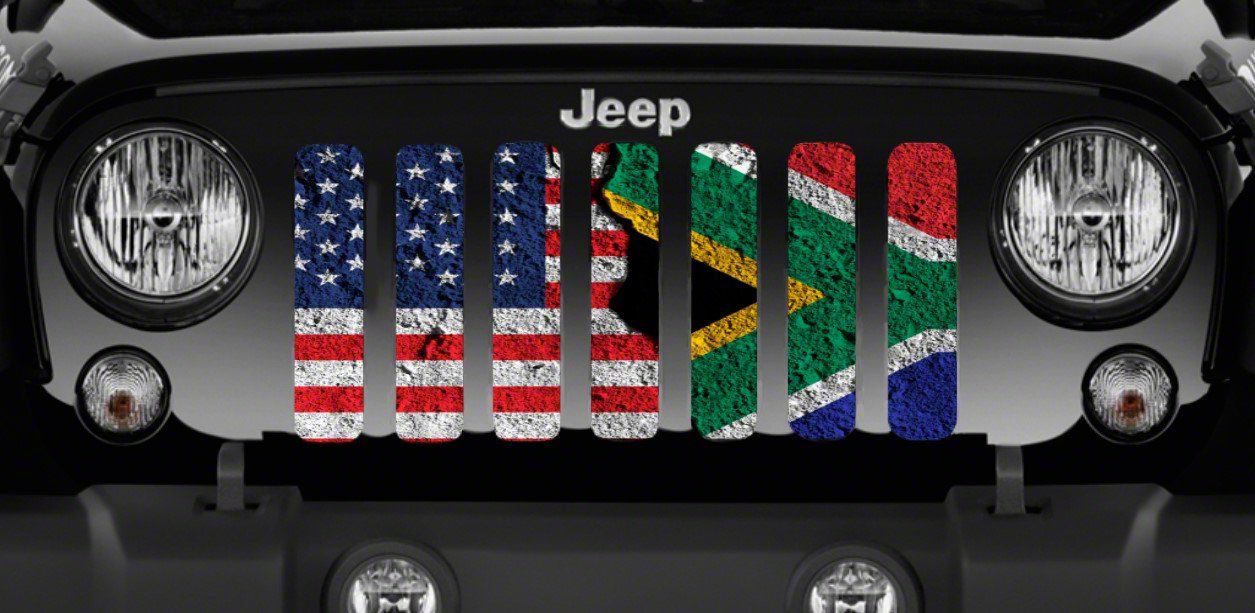 Personalize Your Jeep. This Grille Insert; South Africa American Flag will customize your Jeep in your own way. Rest assured, it will not compromise the integrity of your grille. Your radiator and engine compartment still gets the proper airflow needed to perform.
