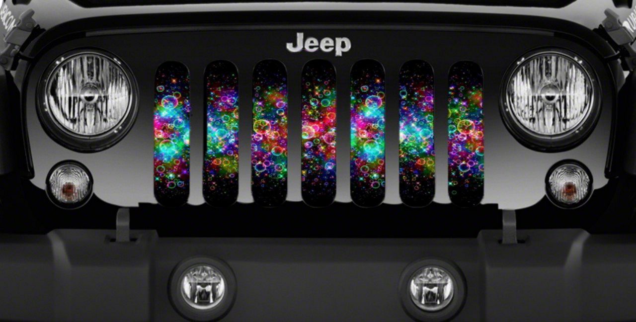 Personalize Your Jeep. This Grille Insert; Spectrum of Bubbles will customize your Jeep in your own way. Rest assured, it will not compromise the integrity of your grille. Your radiator and engine compartment still gets the proper airflow needed to perform.