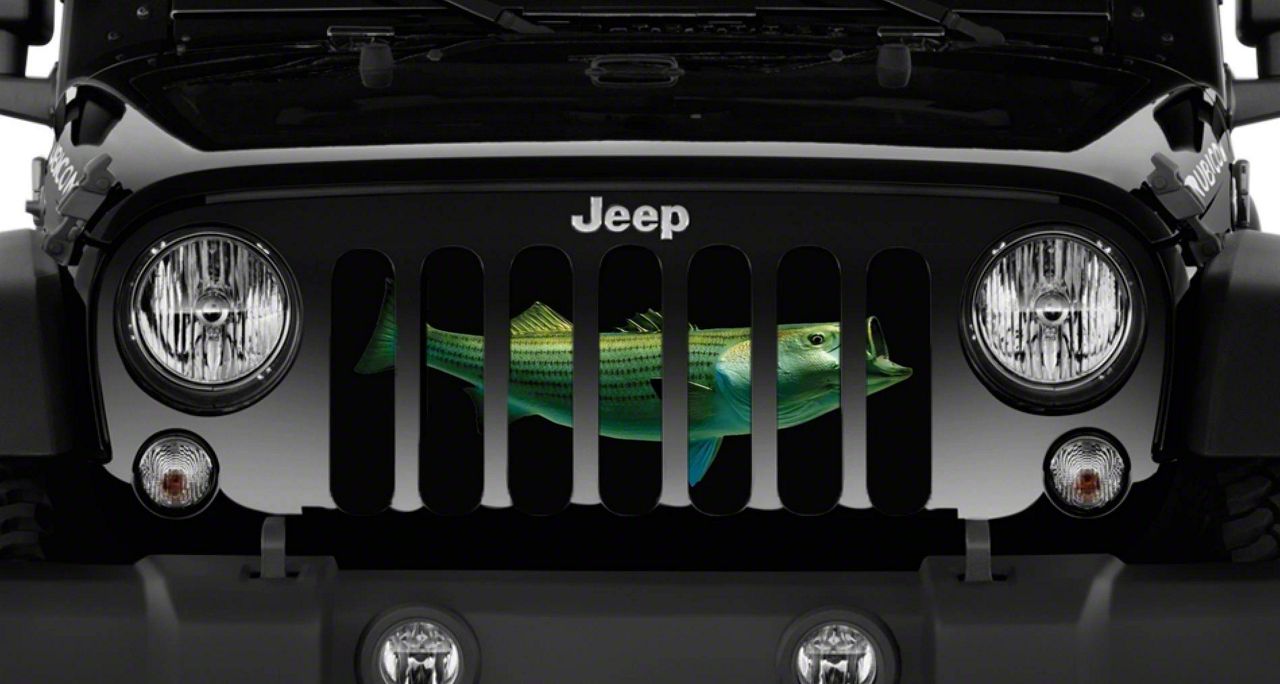 Personalize Your Jeep. This Grille Insert; Striped Bass will customize your Jeep in your own way. Rest assured, it will not compromise the integrity of your grille. Your radiator and engine compartment still gets the proper airflow needed to perform.