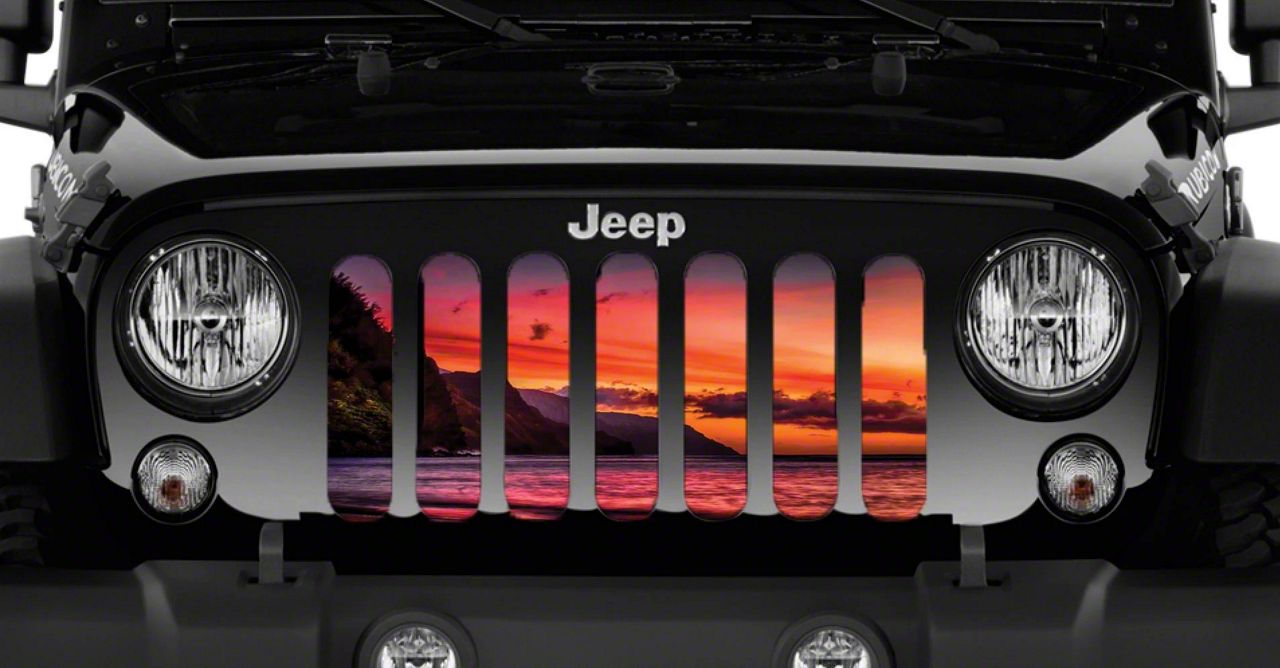 Personalize Your Jeep. This Grille Insert; Sunset on Kauai will customize your Jeep in your own way. Rest assured, it will not compromise the integrity of your grille. Your radiator and engine compartment still gets the proper airflow needed to perform.