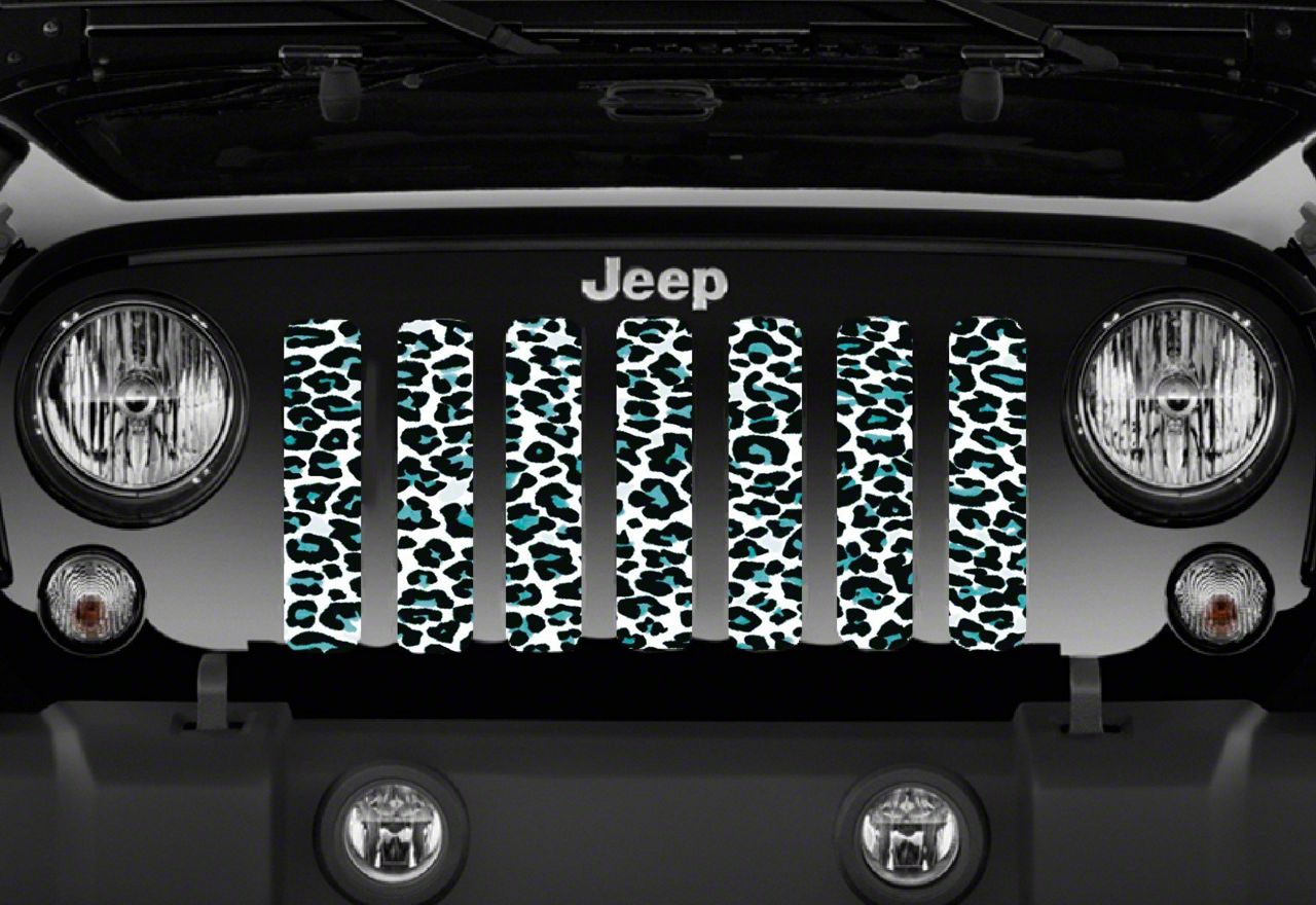 Personalize Your Jeep. This Grille Insert; Teal White Leopard will customize your Jeep in your own way. Rest assured, it will not compromise the integrity of your grille. Your radiator and engine compartment still gets the proper airflow needed to perform.
