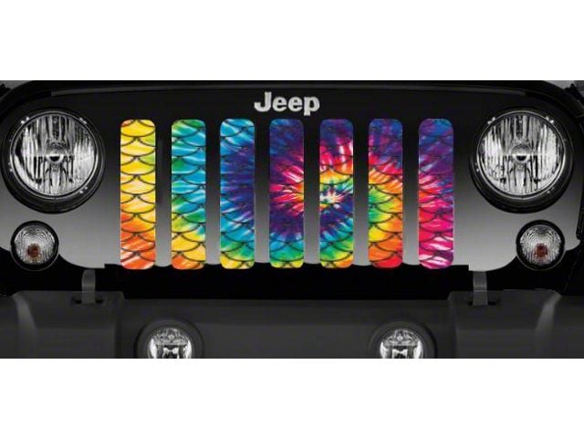 Personalize Your Jeep. This Grille Insert; Tie Dye Mermaid Scales will customize your Jeep in your own way. Rest assured, it will not compromise the integrity of your grille. Your radiator and engine compartment still gets the proper airflow needed to perform.