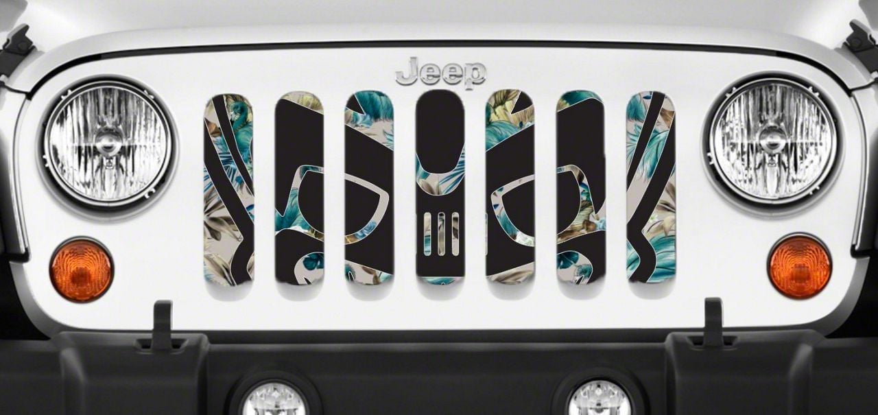 Personalize Your Jeep. This Grille Insert; Tiki Bob Blue Hawaii will customize your Jeep in your own way. Rest assured, it will not compromise the integrity of your grille. Your radiator and engine compartment still gets the proper airflow needed to perform.