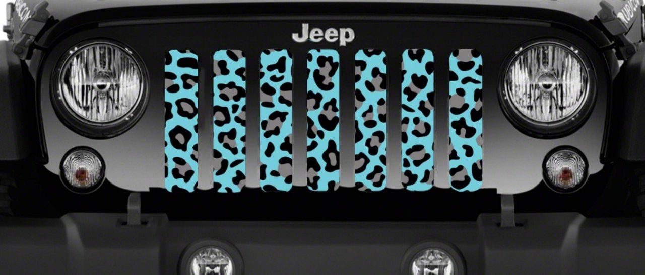 Personalize Your Jeep. This Grille Insert; Turquoise Leopard Print will customize your Jeep in your own way. Rest assured, it will not compromise the integrity of your grille. Your radiator and engine compartment still gets the proper airflow needed to perform.