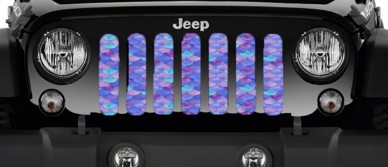 Personalize Your Jeep. This Grille Insert; Violet Mermaid Scales will customize your Jeep in your own way. Rest assured, it will not compromise the integrity of your grille. Your radiator and engine compartment still gets the proper airflow needed to perform.