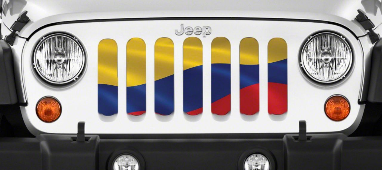 Personalize Your Jeep. This Grille Insert; Waving Columbian Flag will customize your Jeep in your own way. Rest assured, it will not compromise the integrity of your grille. Your radiator and engine compartment still gets the proper airflow needed to perform.