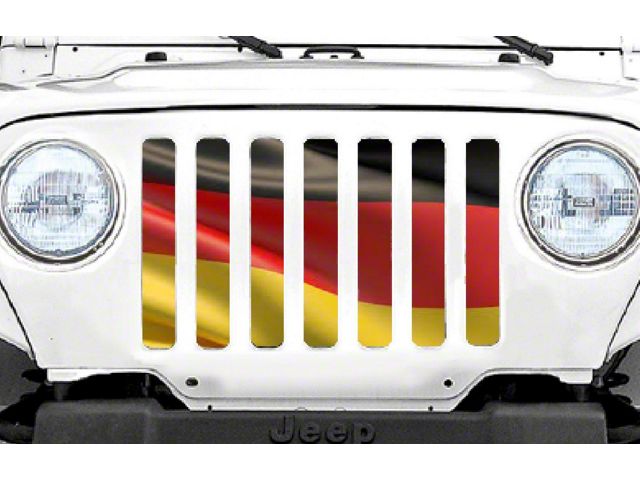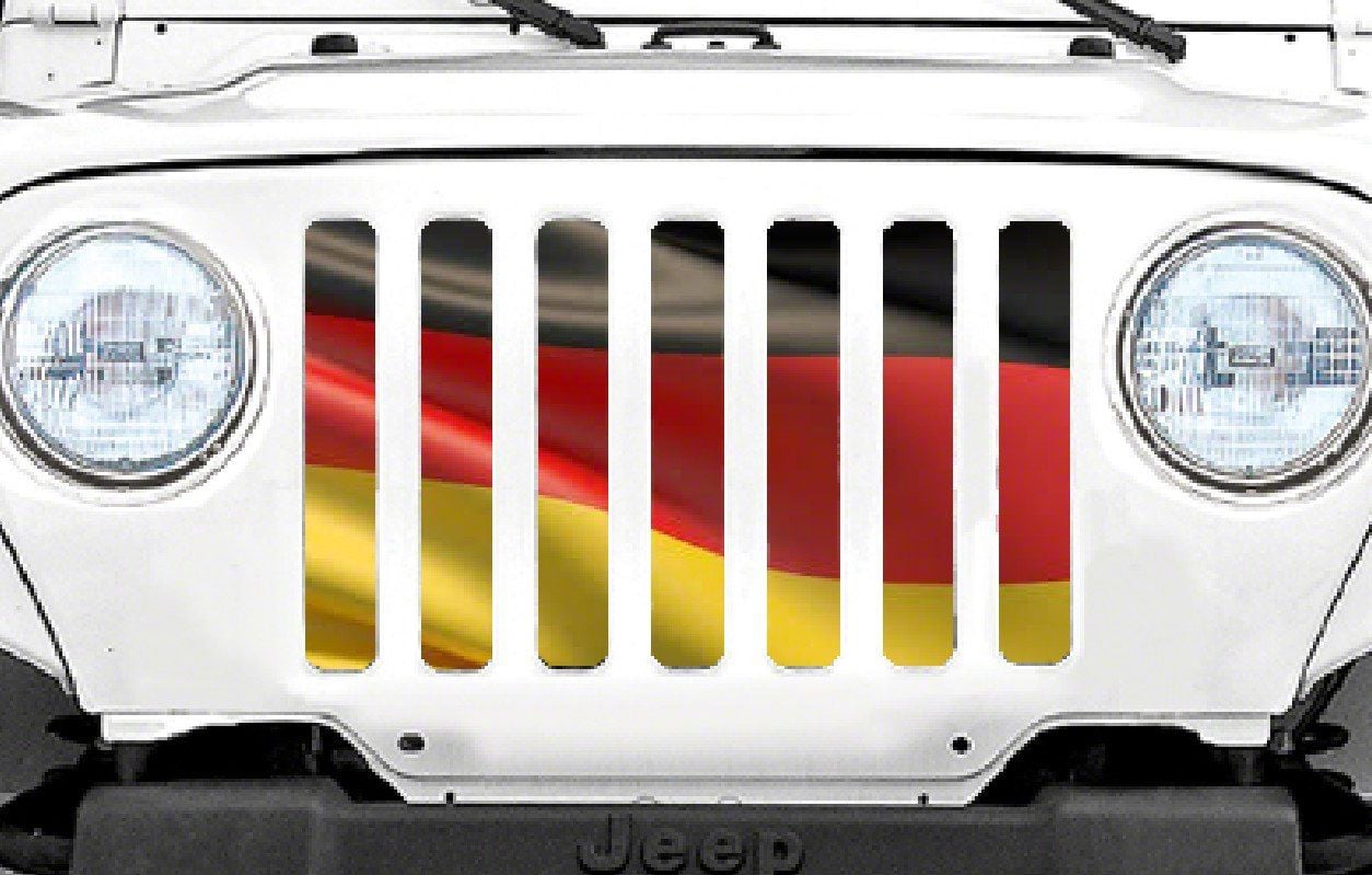 Personalize Your Jeep. This Grille Insert; Waving German Flag will customize your Jeep in your own way. Rest assured, it will not compromise the integrity of your grille. Your radiator and engine compartment still gets the proper airflow needed to perform.