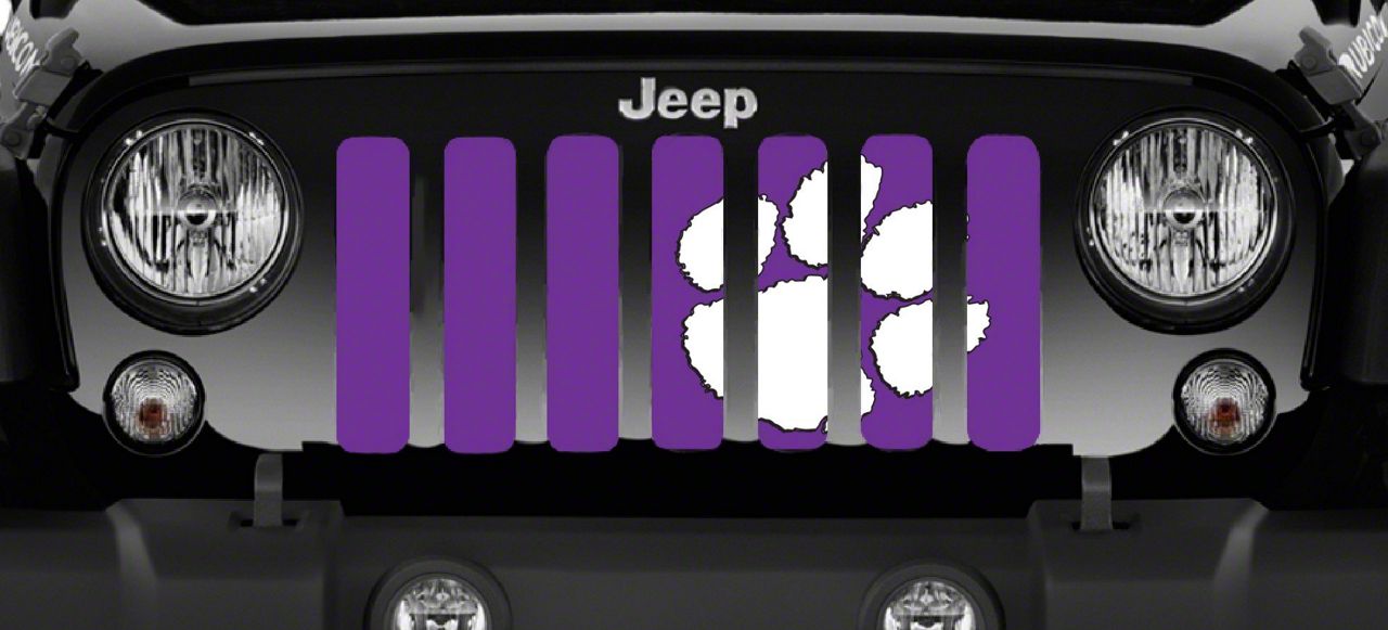 Personalize Your Jeep. This Grille Insert; White Tiger Paw Print Purple will customize your Jeep in your own way. Rest assured, it will not compromise the integrity of your grille. Your radiator and engine compartment still gets the proper airflow needed to perform.