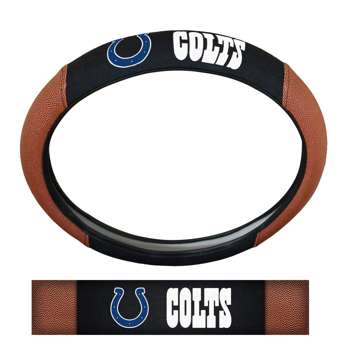 Grip Steering Wheel Cover with Indianapolis Colts Logo; Tan and Black (Universal; Some Adaptation May Be Required)