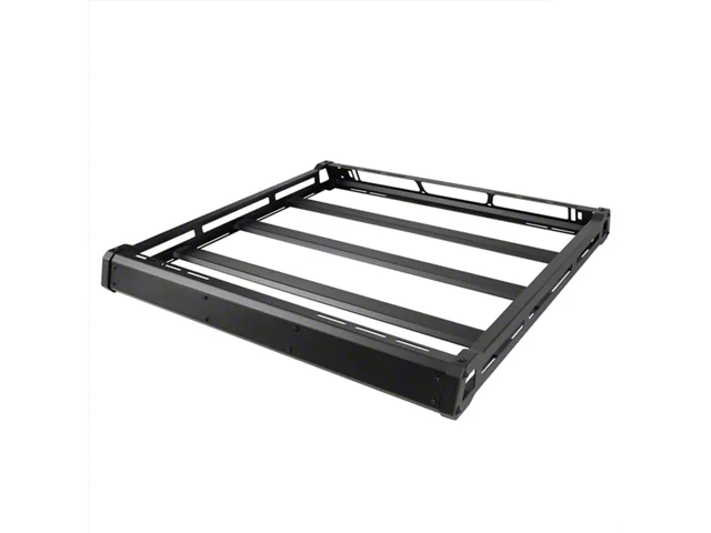 Construction. This Hard Top Roof Rack Cargo Carrier is crafted from a single piece of aluminum. It offers a 150-pound load capacity and measures 52.75 inches (L) x 54.50 inches (W) x 5.75 inches (H).