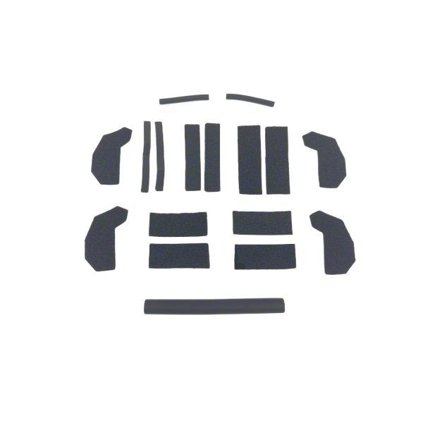 Construction and Appearance. Constructed with a combination of high-quality rubber and dense foam layers, this seal kit offers long-lasting durability and reliable sealing performance. The deep black color matches OEM components and provides a clean, factory-installed appearance. Each piece is precision-cut for a proper fit around critical sealing points, maintaining the Wrangler's rugged look while enhancing function.