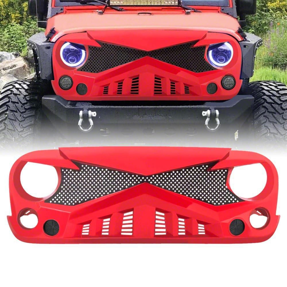 Application. This American Modified Hawke Grille in Red fits all 2007-2018 Jeep Wrangler JK models.