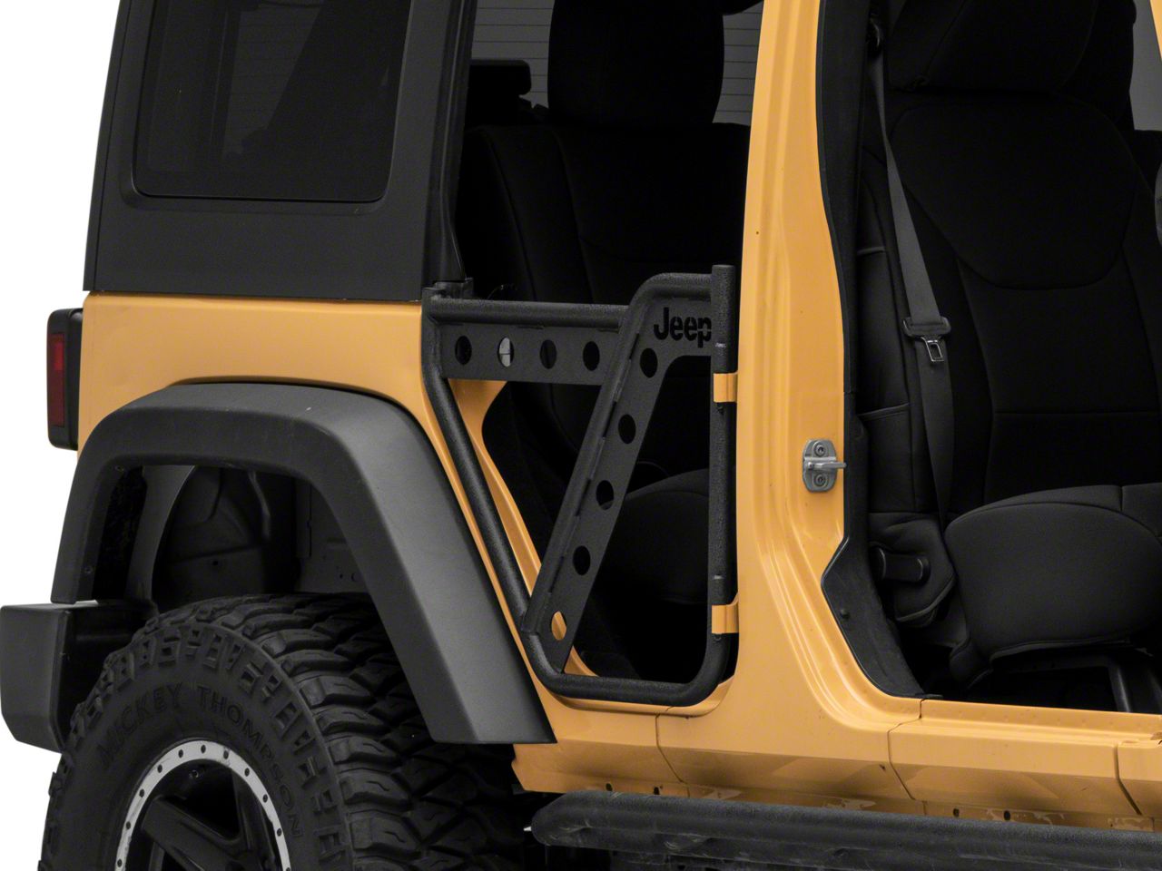 Safari Jeep Styling. Add exciting safari styling to your 2007-2018 JK Wrangler with a set of Jeep Licensed by RedRock HD Adventure Doors. These tubular Adventure Doors will give you the open air driving experience you love, while providing more safety than riding without doors alone. Besides fresh air, these Tubular Doors will help to increase your visibility which is great when you're trying to negotiating tough trails. Additionally, the authentic laser cut Jeep logos give these Doors an eye-catching accent that’s sure to impress your fellow Jeep enthusiasts.